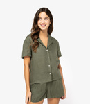 Spasso Ladies Short Sleeve Linen Bowling Collar Shirt
